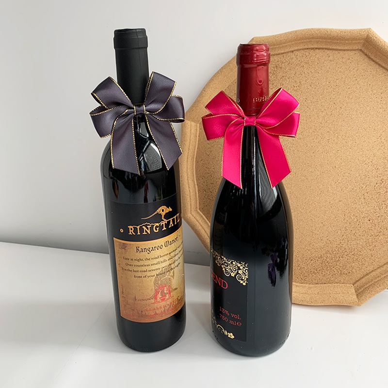 This satin bow is a creative embellishment for wine bottle and gift box packaging. It applies to the packaging of red wine, white wine, champagne and other alcoholic beverages, as well as the decoration of cosmetics gift boxes and gift bags. It adds delicacy and ritual sense to product packaging, enhancing the grade and attractiveness of gifts.