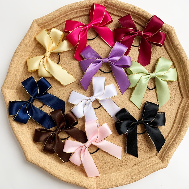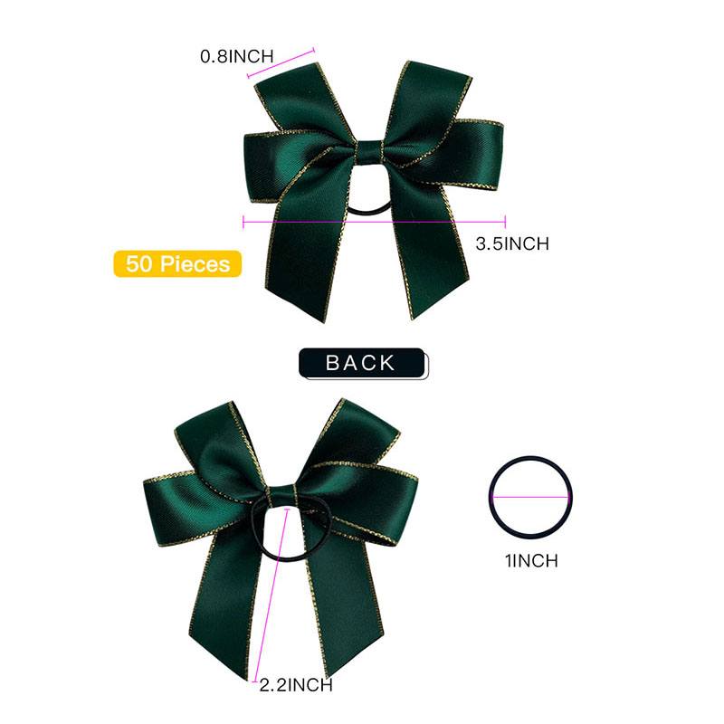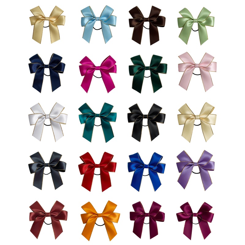 Premium gold-edged satin ribbon features high luster and excellent drape. The ribbon width is 0.8 inches, and the product size is 3.5 inches with an elastic band on the back. This one-piece bow can be directly used for wine bottles or other packaging.