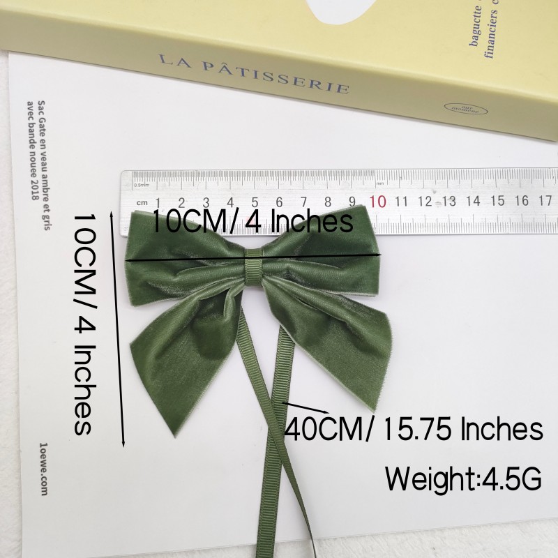 Production Process: Each bow is neatly folded and tied by hand, ensuring each "wing" is symmetrical and full. The velvet edges are neat without excess frays, showing quality in every detail.