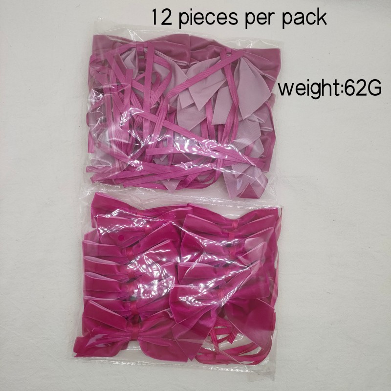 Specifications: The bow is approximately 10cm wide, with a matching ribbon length of 40cm. Each piece weighs only 4.5g, lightweight yet eye-catching. Each pack contains 12 bows to meet bulk decoration needs, weighing about 62g for easy storage and portability.