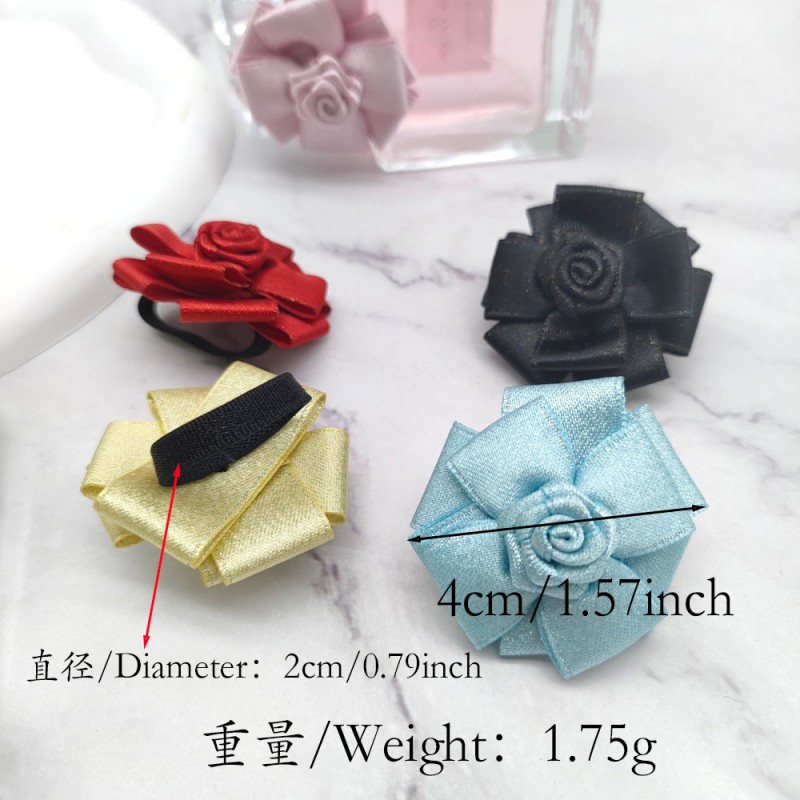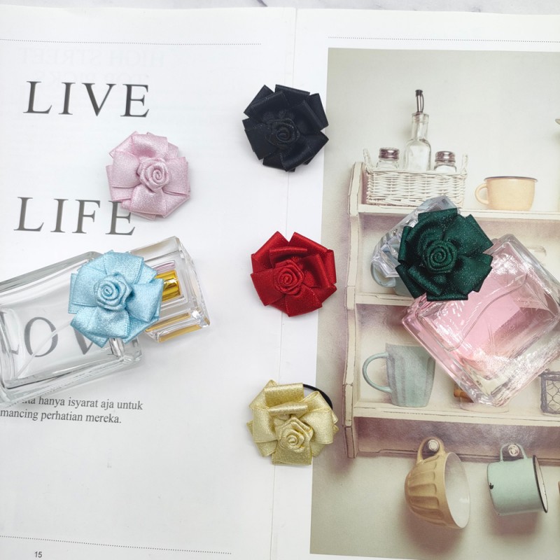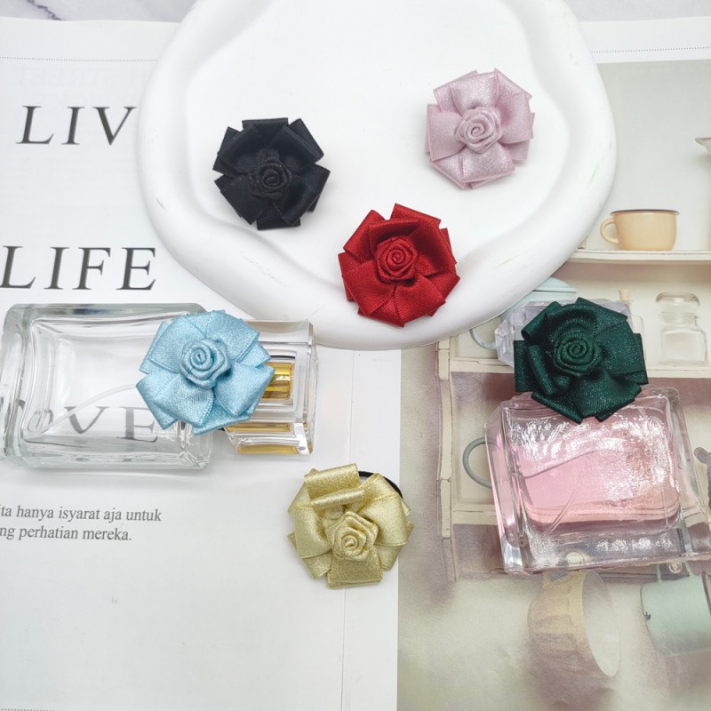 Handcrafted satin camellia with a diameter of approximately 4cm, paired with a 2cm-diameter high-elasticity ribbon loop. Each piece weighs only 1.75g—compact and lightweight, it can flexibly fit the neck or body size of most perfume bottles without adding extra burden.
