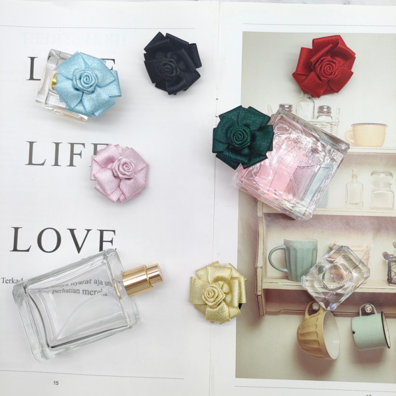 Features & Uses: Centered on a 3D handcrafted satin camellia, the satin has a natural smooth and delicate luster. Multiple layers of petals are hand-folded to create a full and realistic flower shape, resembling an exquisite real flower blooming on the perfume bottle. With the high-elasticity ribbon loop, it can be easily slipped around the perfume bottle’s neck or attached to the bottle body with invisible double-sided tape (if needed). It endows simple perfume bottles with an elegant "floral decoration" atmosphere, transforming them from mere fragrance carriers into small desktop aesthetic ornaments. When used as a decoration for perfume gifts, it significantly enhances the ritual sense and thoughtfulness of the gift.