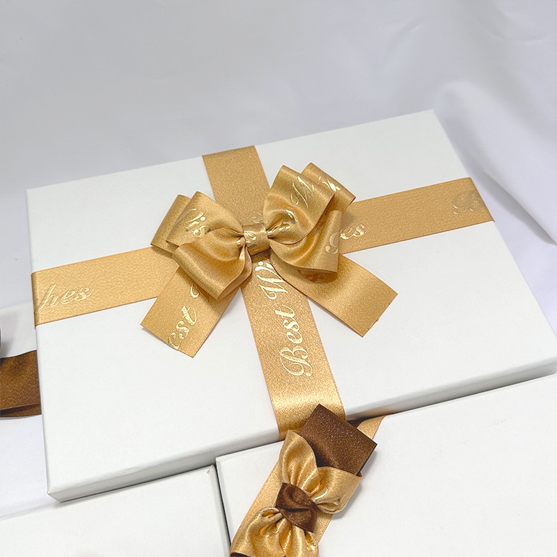 Crafted from high-gloss satin ribbon with a luxurious gold-brown color block design, these bows boast a delicate, soft sheen. Each bow is full and three-dimensional; select styles feature hand-woven ribbon flowers or artificial greenery for extra refinement. The ribbon is printed with "Best Wishes" in elegant gold foil lettering, infusing your gift box with a warm, thoughtful vibe.