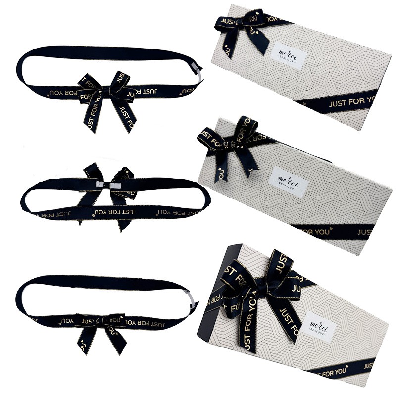 Paired with geometric-patterned gift boxes, these bows feature navy satin ribbon + gilded "JUST FOR YOU" lettering — trimmed with fine gold edges for a luxe touch. The standout adjustable elastic design lets you choose the elastic clip’s position, fitting boxes of all sizes while infusing packaging with a "custom-made" warmth.